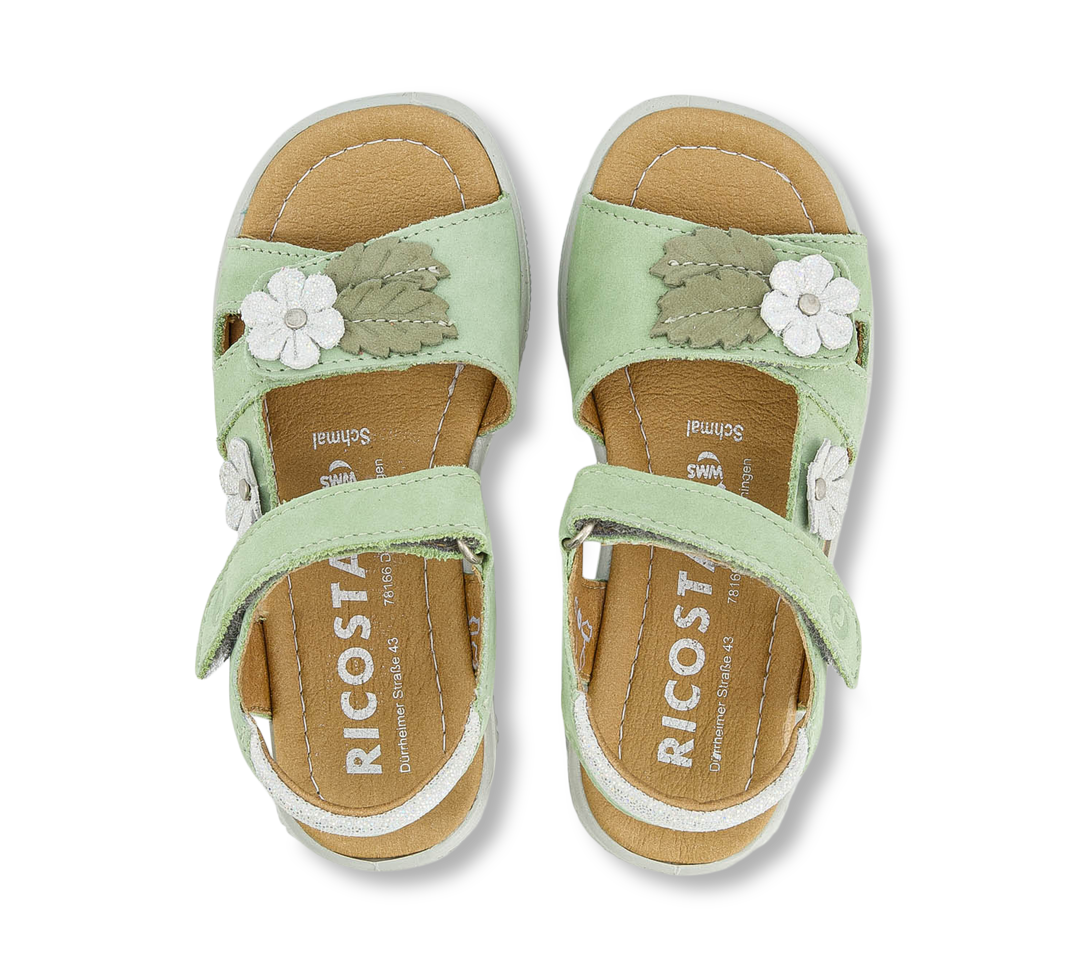 Die Kinderschuhe CILLA sind ideal für die warme Jahreszeit geeignet. Das Obermaterial der Sandalen von RICOSTA besteht aus echtem Chip-Leder, das nach jedem Spaziergang mit einem Tuch gereinigt werden kann. Über dem Spann und an den Fesseln sind die Modelle mit Klettverschlüssen gearbeitet. Kinder können diese Unisex Modelle beim Verschliessen perfekt an die Form ihrer wachsenden Füsse anpassen. Besonders schön ist das Design der Applikationen gelungen, die sowohl Blüten als auch Blätter darstellen. Die Laufsohlen aus PU sind mit einem griffigen Profil im Blumenmuster gestaltet. Diese Sandalen gibt es in vielen Farben.
