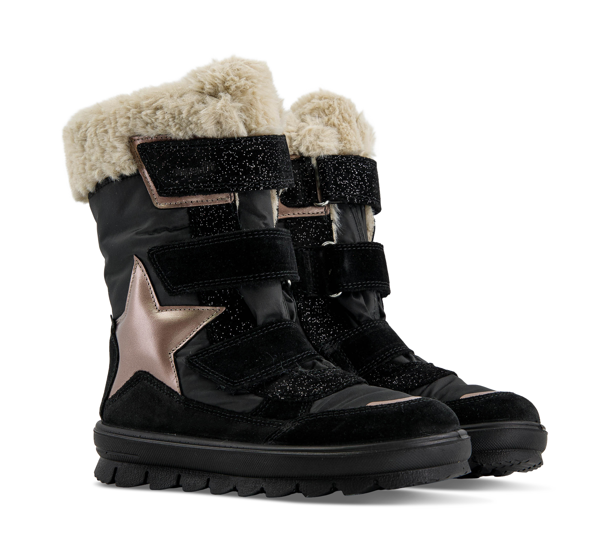 Der sportiv-schicke Stiefel FLAVIA macht den Winter zum Star. Mit seiner Kombination aus Textil, Velours- und Metallicleder kommt der superfit Winterschuh super stylisch daher. Schöne Hingucker: die edle, glänzende Stern-Applikation auf der Seite sowie die liebevollen Lederdetails am Klettverschluss und am Vorderfuss. Der tolle Tragekomfort kommt bei FLAVIA vom kuscheligen Plüschkragen.