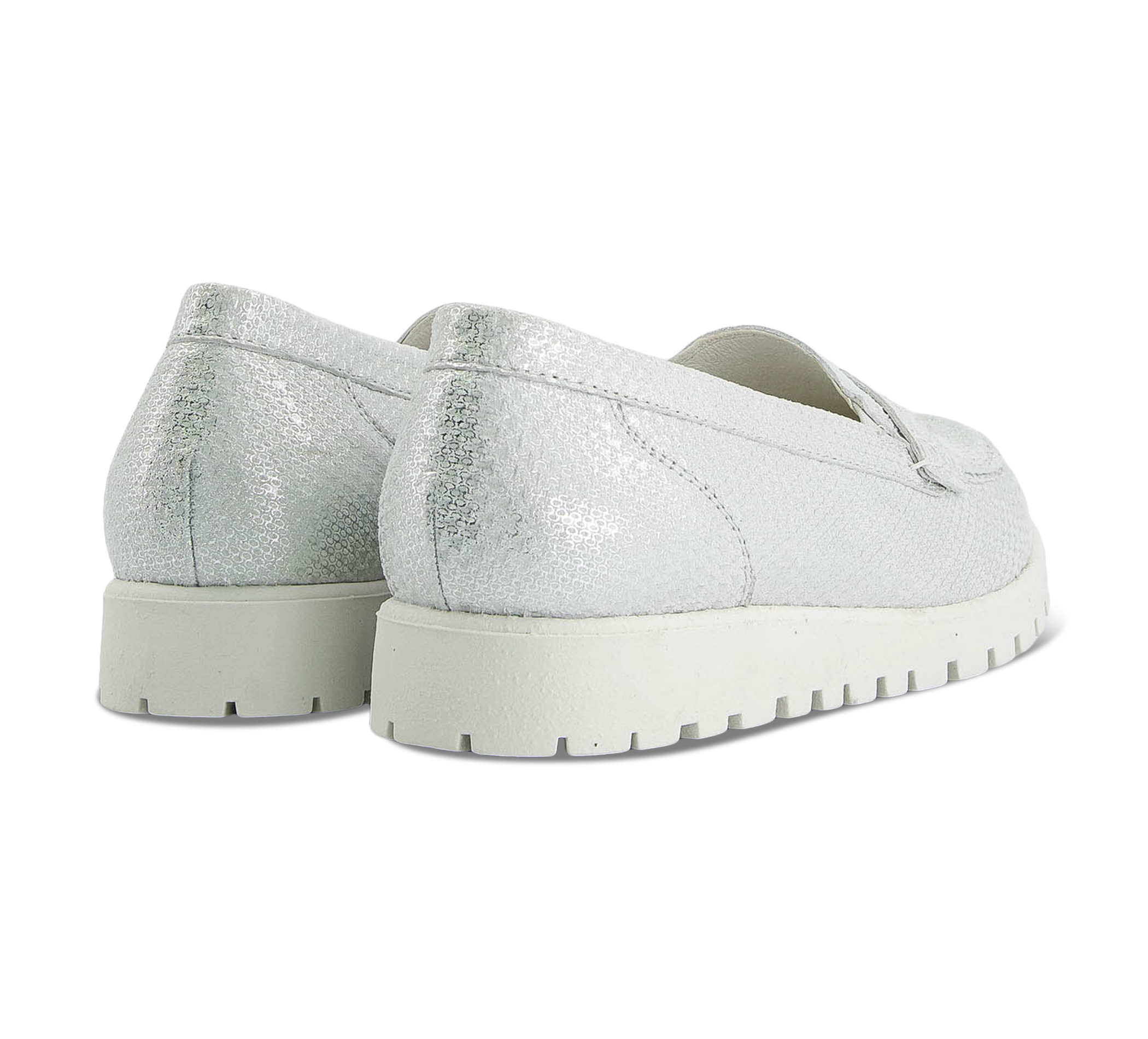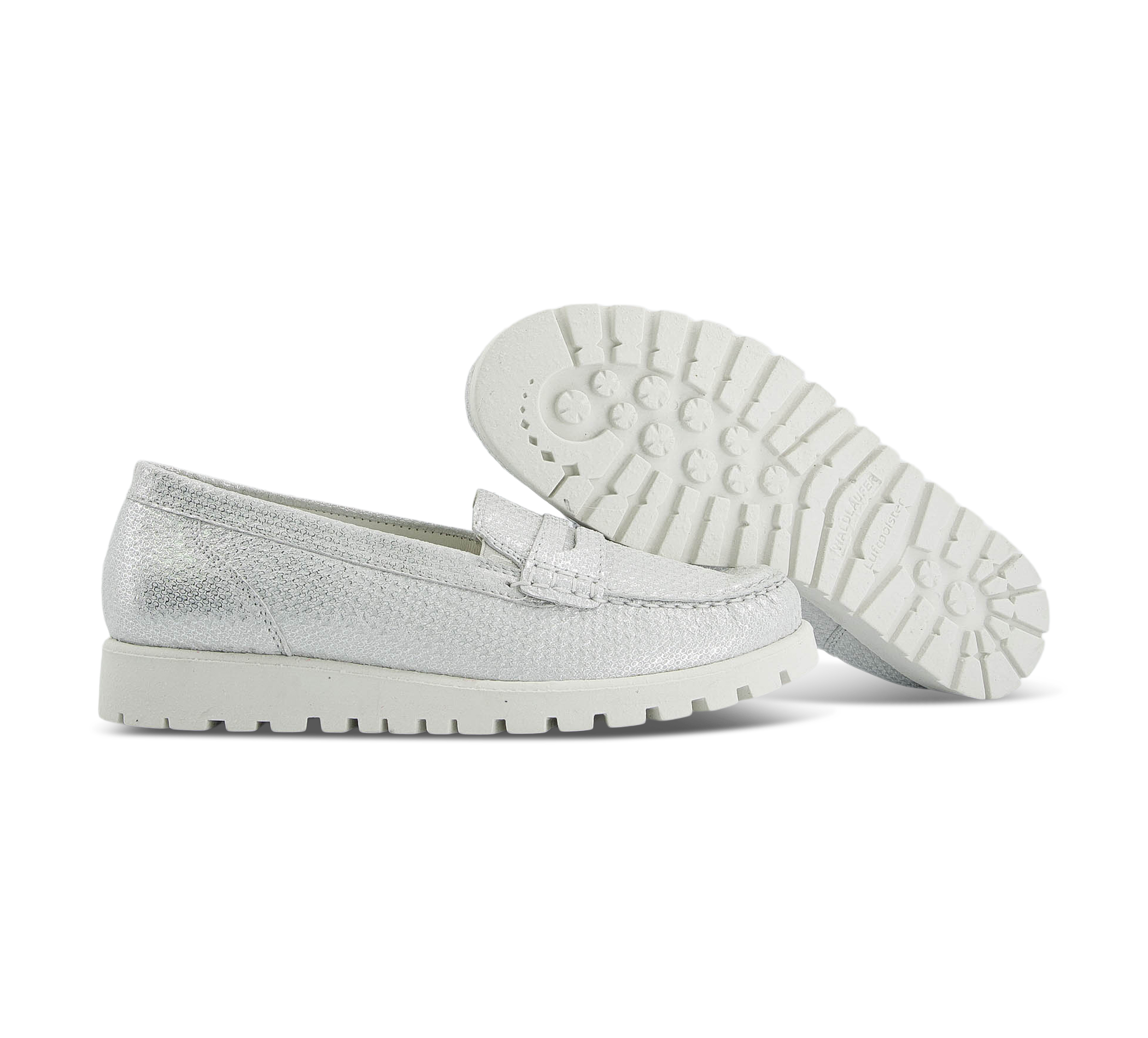In schimmerndem Silber präsentiert sich der Hegli Damenmokassin als glänzender Hingucker für jede Gelegenheit. Dieses Modell überzeugt jedoch nicht nur durch seine edle Optik, sondern bietet durch die Luftpolstersohle ein außergewöhnlich komfortables Laufgefühl. Die Weite H sorgt für zusätzlichen Komfort und passt sich optimal an den Fuß an. Der Hegli Mokassin ist nicht nur stilvoll, sondern auch praktisch und bestens für den Alltag oder besondere Anlässe geeignet.