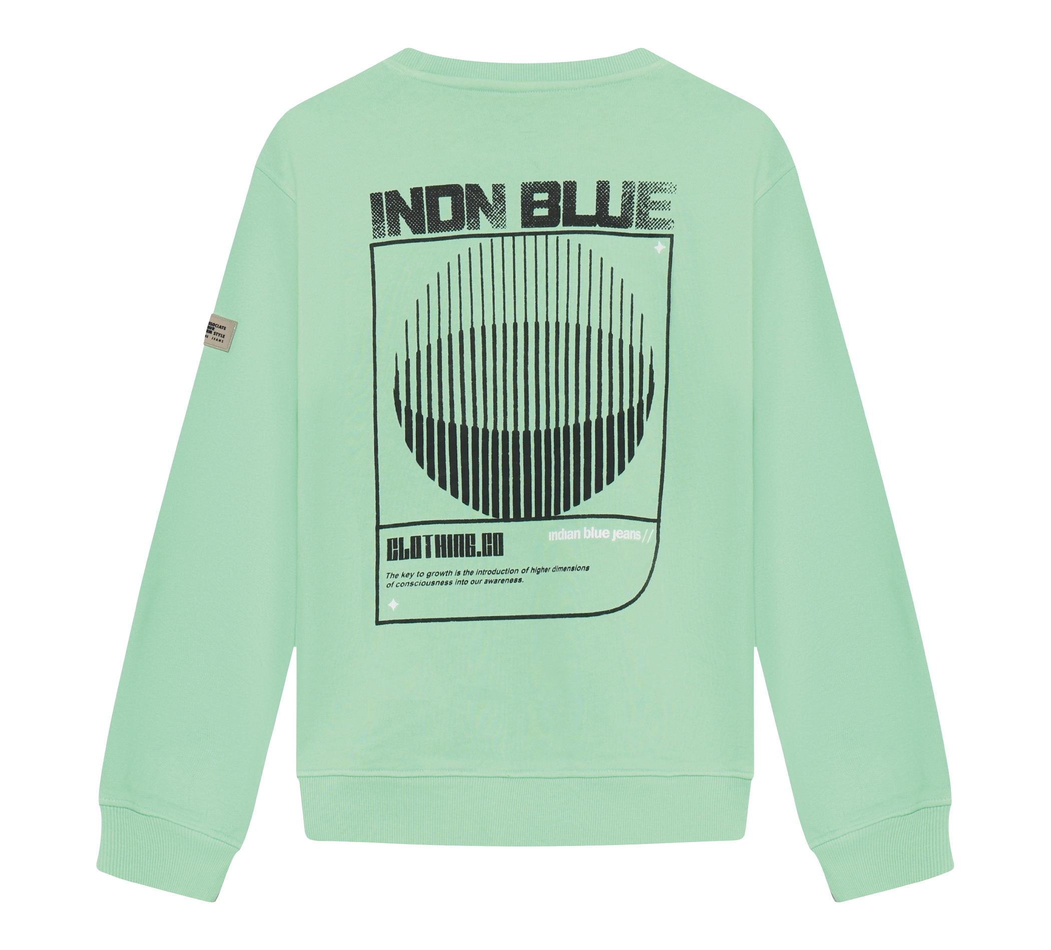 Sweatshirt von Indian Blue Jeans. Das Sweatshirt hat einen Aufdruck auf der Brust und auf dem Rücken. Es verfügt über gerippte Kanten und eine weite Passform.