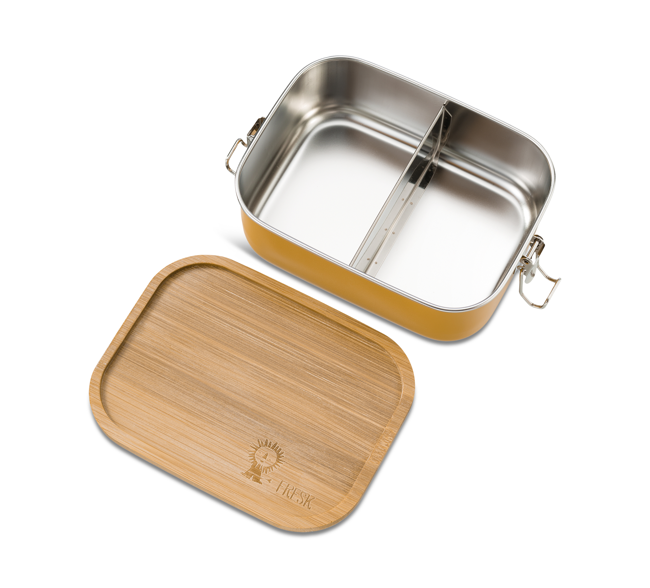 Die Lunchbox aus Edelstahl besitzt einen Deckel aus dem schnell nachwachsenden Rohstoff Bambus. Der Silikonring im Deckel hält die Brotdose luftdicht verschlossen und die zwei Metall-Klemmverschlüsse halten den Stülpdeckel auf der Brotdose. Im Inneren befindet sich eine praktische Trennwand, um belegtes Brot oder Obst von süssen Kleinigkeiten zu trennen. Nicht spülmaschinengeeignet.