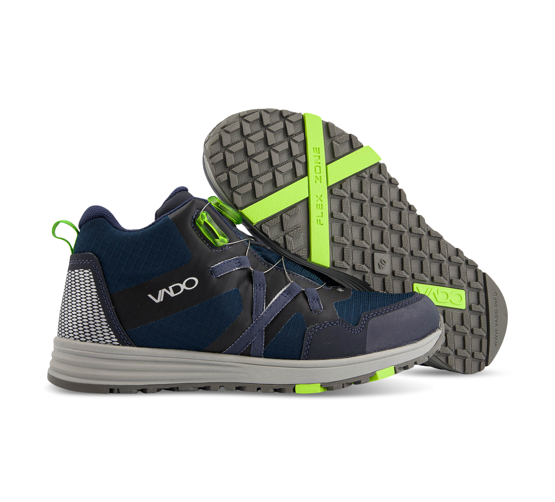 MIKE ist wie der beste Freund, der alle Abenteuer mit deinem Kind erlebt. Die Schuhe sind aus einem atmungsaktiven Rip-Stop Mesh-Textil Obermaterial gefertigt und mit einem Fleece Futter ausgestattet. Die Spitze und stark beanspruchte Bereiche sind mit einer strapazierfähigen TPU Beschichtung verstärkt. Das einfach zu bedienende BOA Fit-System sorgt für perfekte Passform und dein Kind stolpert niemals über offene Schnürsenkel. Reflektoren an der Ferse und den Seiten sorgen für bessere Sichtbarkeit in der Dämmerung und damit für mehr Sicherheit. Die GORE-TEX Membran macht den Schuh wasserdicht und atmungsaktiv und sorgt dafür, dass die Füsse immer trocken bleiben. Der Schuh hat eine Laufsohle aus Gummi. Die sorgt für besseren Halt und die VADO X Flex-Zone im vorderen Bereich der Sohle unterstützt nachweislich eine gesunde Entwicklung der Ganglinie. Alle VADO Schuhe sind mit einem herausnehmbaren Fussbett ausgestattet, das bei 30° in die Waschmaschine kann und mit der VADO-typischen Zwischensohle. Diese kann man ebenfalls herausnehmen, wenn Platz für orthopädische Einlagen gebraucht wird oder wenn die Füsse gewachsen sind, um die Tragezeit zu verlängern.