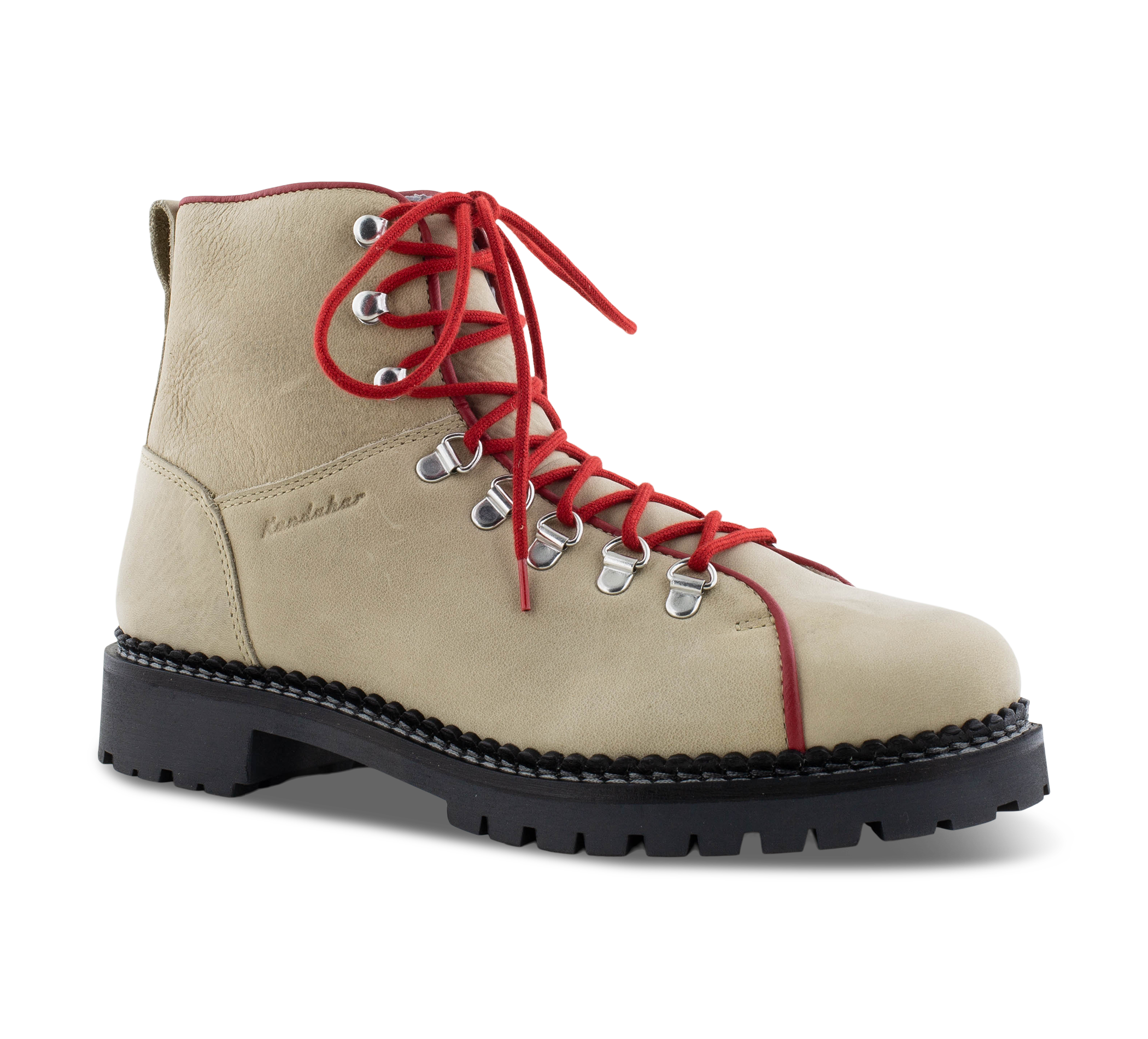 Der Stiefel 'Retro' der Firma Kandahar erinnert zwar an vergangene Zeiten und an die derben Wanderschuhe von Oma, kommt aber viel feiner und mit Zeitgeister Linie daher. Die Schalen-Sohle aus Naturgummi schafft dabei die besten Voraussetzungen für sicheren Halt auf Schnee- und Eisglätte. Das hochwertige Lammfell hält dabei deine Füsse wohlig warm, ohne dass du darin zu schwitzen beginnst. Aussen wird der Schuh von einem schönen, matten Nubuk-Leder in tollem Steingrau durchzogen, das dich und den Schuh durch den Winter bringt. Die knallroten Schuhbändel sind ein cooles Statement an sich!