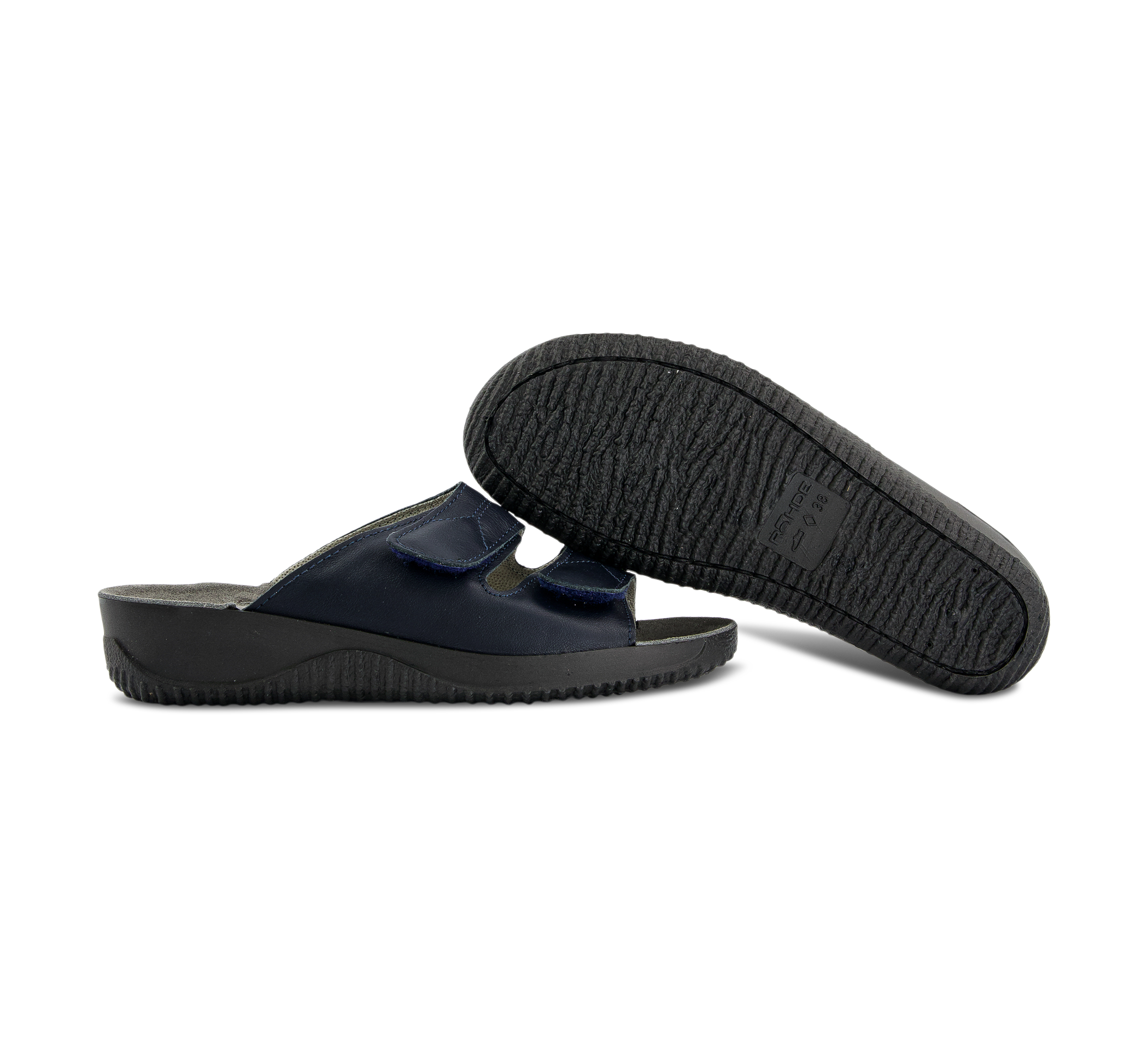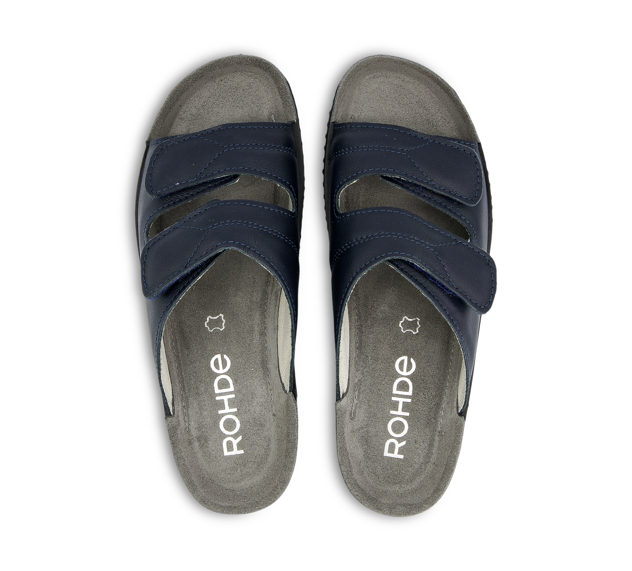 Klassische Damen-Lederpantolette aus dem Hause ROHDE mit rutschfester PVC-Laufsohle deren Ledertieffussbettung besonders weich abgepolstert ist! Durch die zwei weitenverstellbaren Klettverschlüsse können Sie die abgepolsterte Pantolette perfekt Ihren Bedürfnissen anpassen.