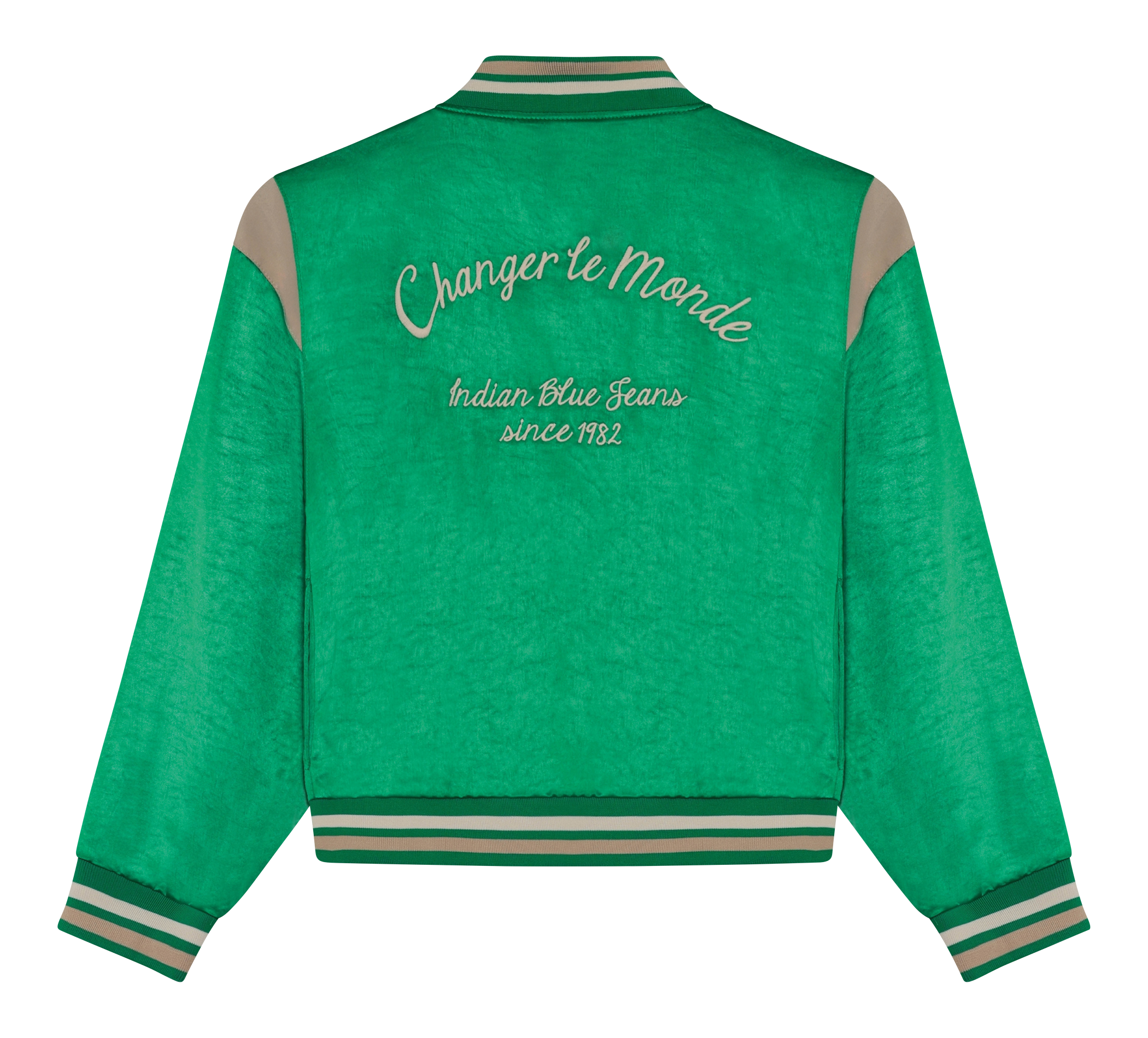 Sportliche Bomberjacke von Indian Blue Jeans. Die Jacke ist einfarbig mit kontrastierenden Details. Ausserdem verfügt sie über einen Aufdruck auf der Brust und dem Rücken. Die Jacke wird mit einem Reissverschluss geschlossen.