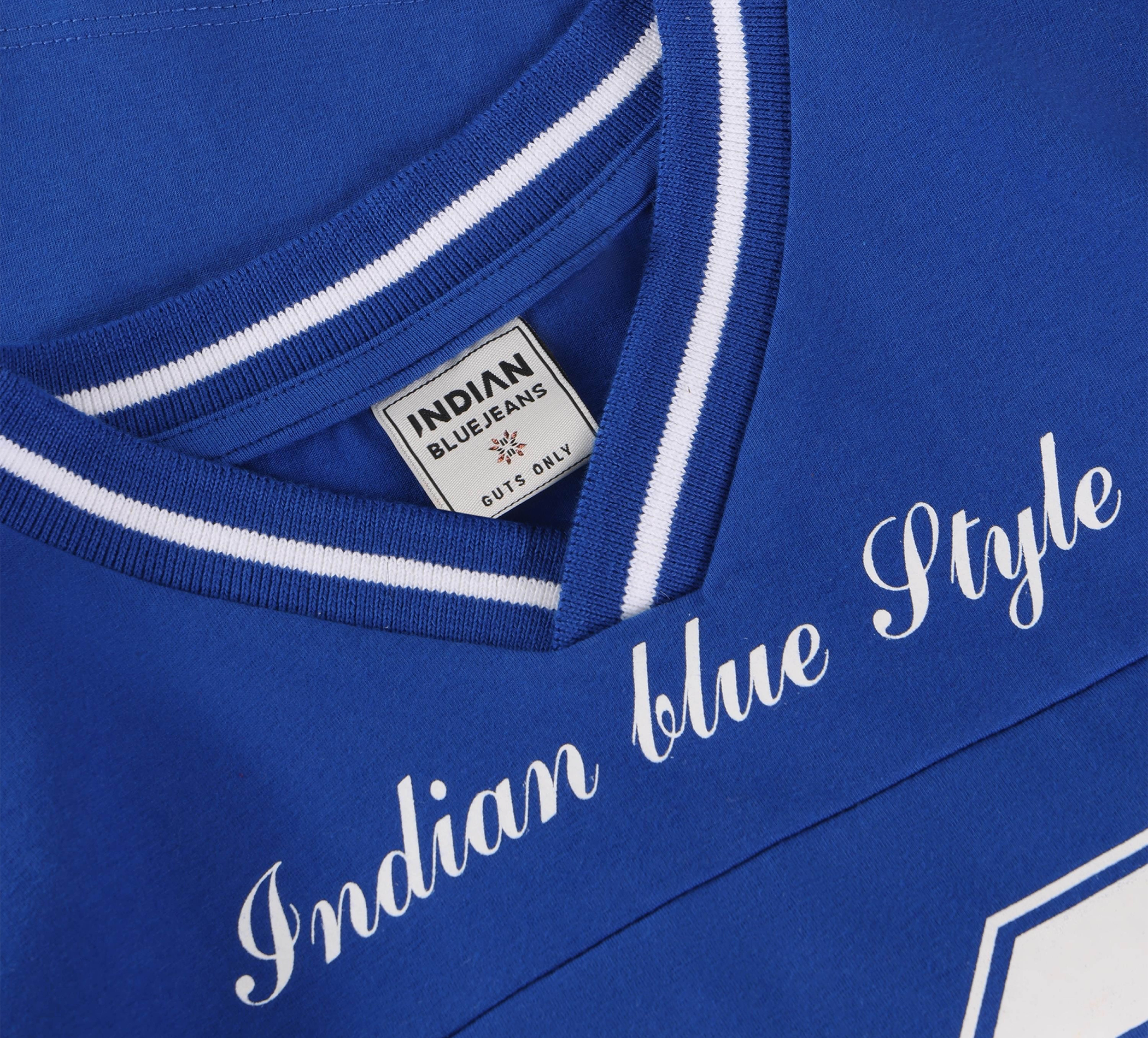 Sportliches T-Shirt von Indian Blue Jeans. Das T-Shirt hat einen Aufdruck auf der Vorderseite und kontrastierende Kanten. Ausserdem hat es einen V-Ausschnitt.