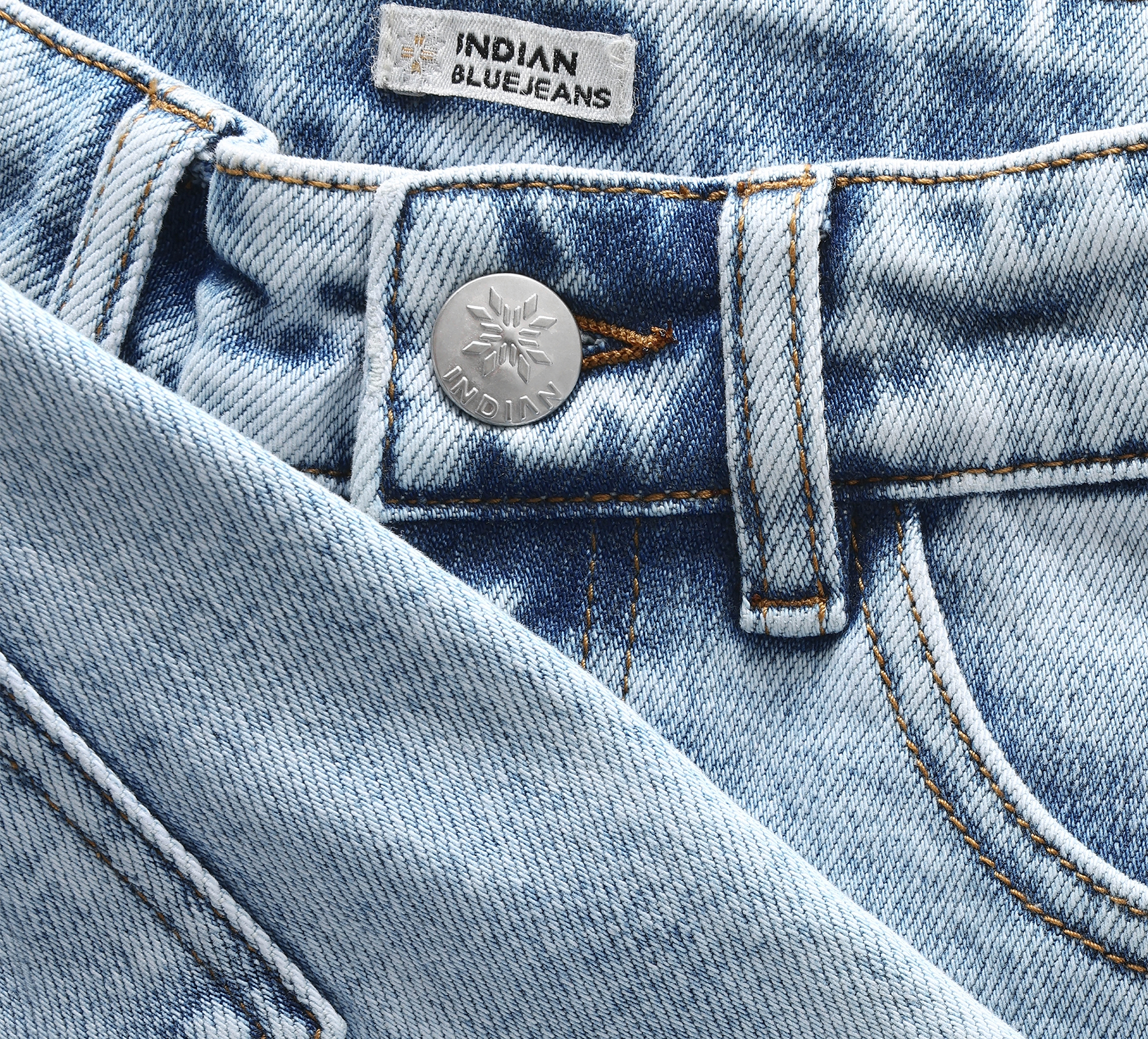 Jeansshorts mit Streifen an den Seiten von Indian Blue Jeans. Die Shorts haben Gürtelschlaufen sowie Vorder- und Gesässtaschen. Sie werden mit einem Reissverschluss und einem Knopf geschlossen. Die Shorts haben eine weite Passform.