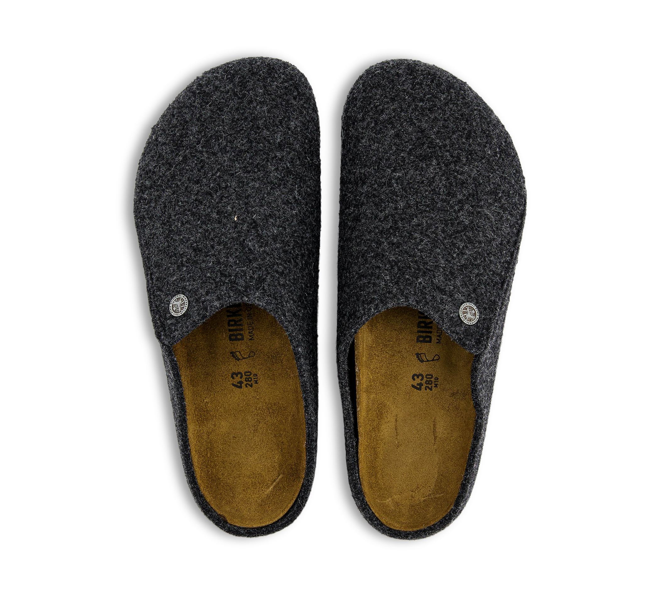Der BIRKENSTOCK Zermatt ist unser erster Hausschuh mit herausnehmbarem Fussbett und eröffnet somit die Wahl zwischen drei Einlagen. Zur Auswahl stehen das Standard Fussbett, das Soft Fussbett und das Shearling Fussbett. Alle drei können einzeln bestellt werden. Ideal für das ganze Jahr! Diese Variante zeigt sich in der Grundausstattung mit unserem Standard Fussbett. Es ist einer natürlichen Trittspur eines Fusses im Sand nachempfunden ist und begleitet komfortabel durch den Tag. Das Obermaterial besteht aus einem weichen Wollfilz.